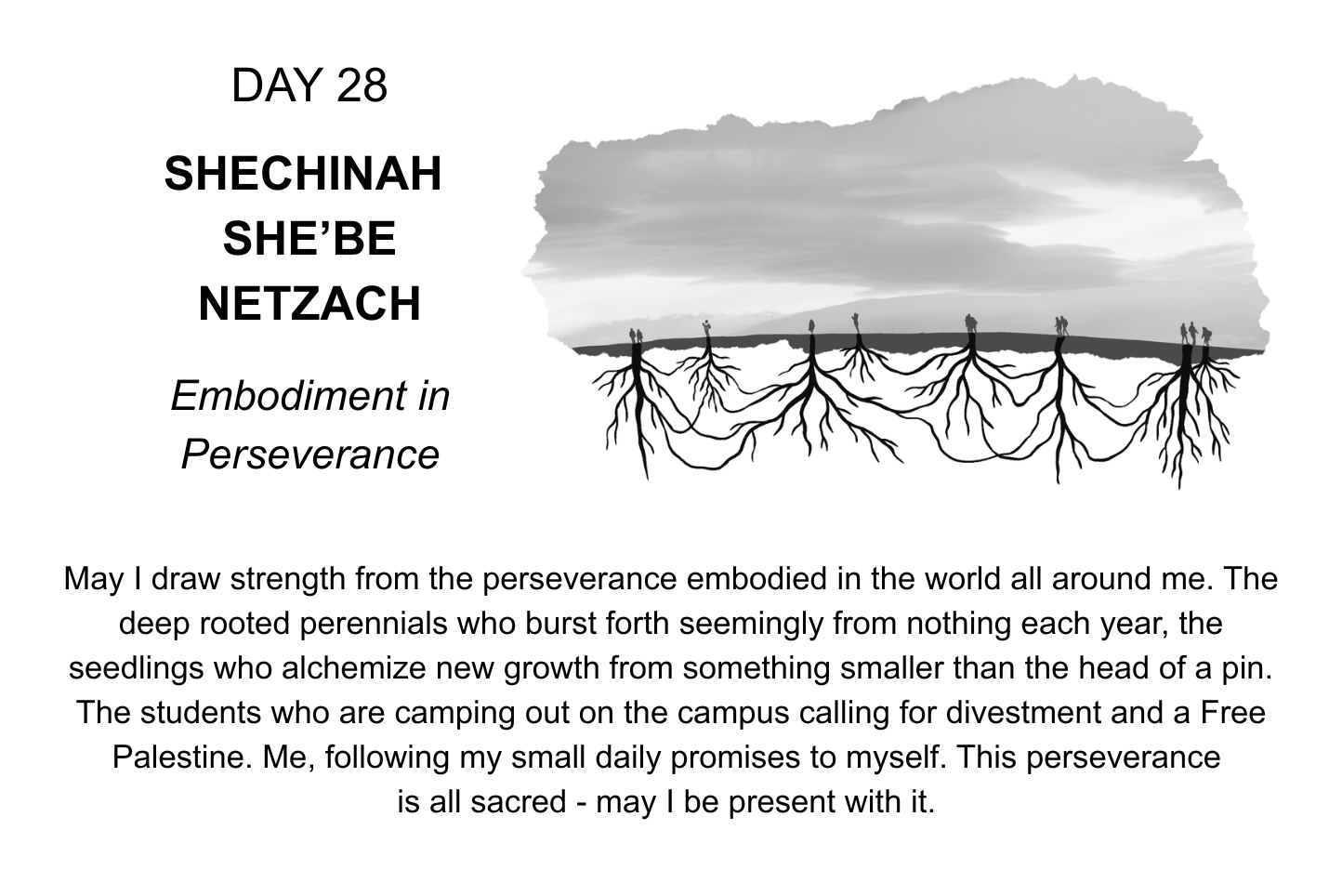May the count of the Omer support each of us in showing up for the heartbreaks and joys of our daily lives and the wider world. May it connect us to the mysterious, infinite support that is always available. May the magic of this practice help us get free, and help us stand and risk together so that we may all get free.