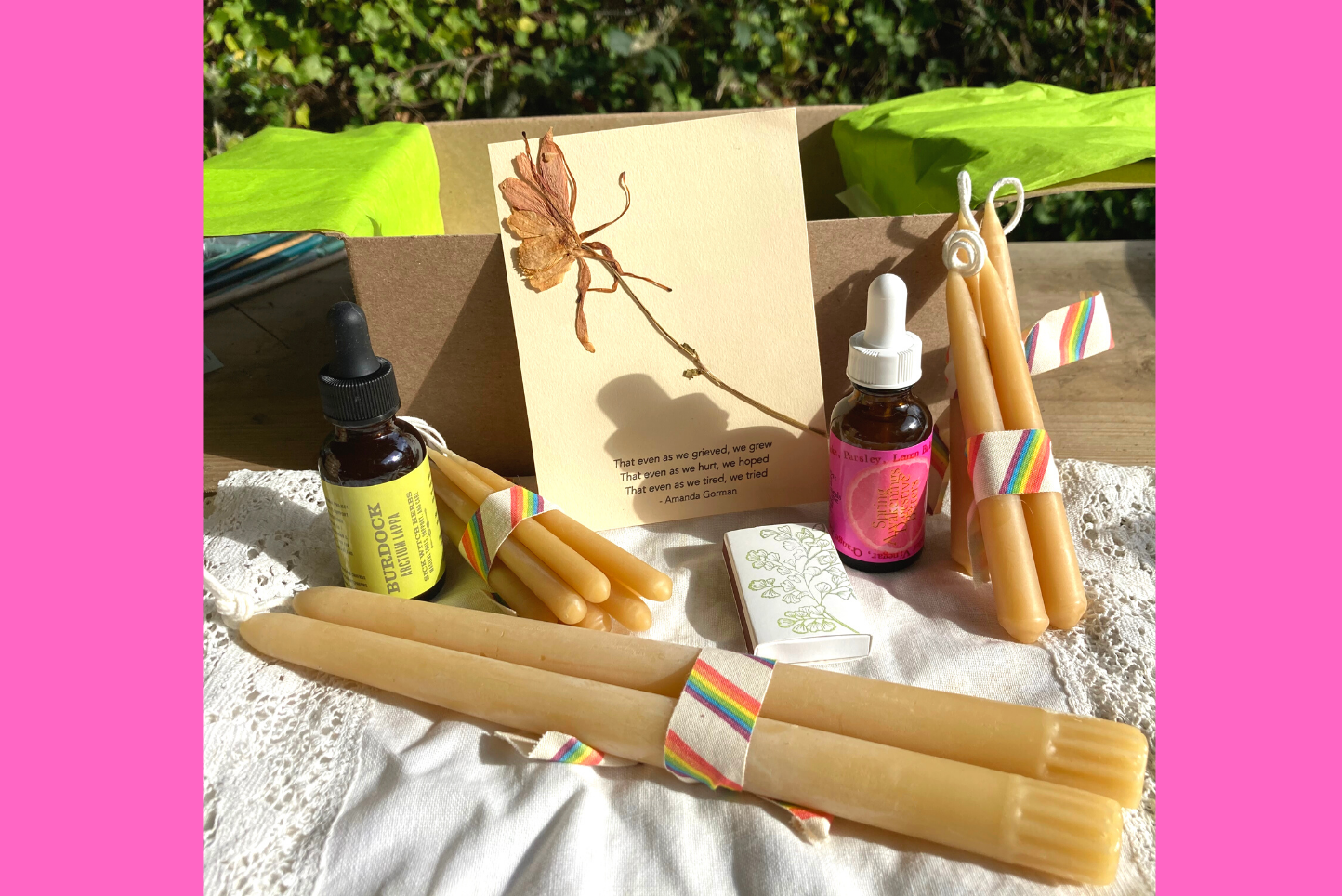 This ritual box is still being made. We’ll get pictures up of the elements as soon as possible. Past pictures included to show what ritual boxes generally look like.