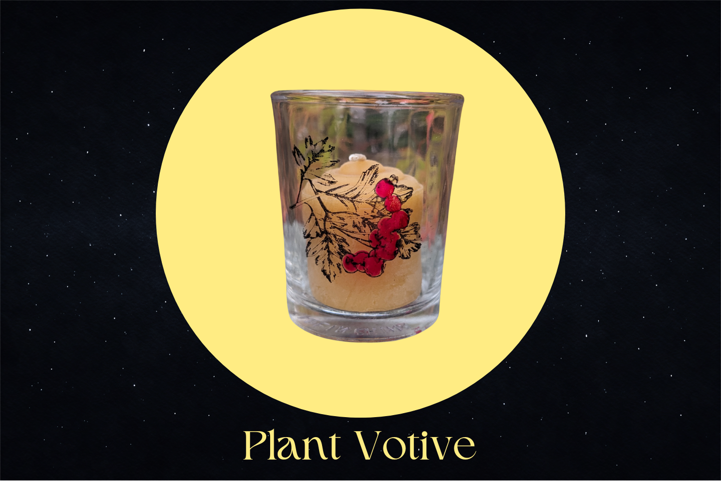 The votive glass has three options for images printed on the glass: