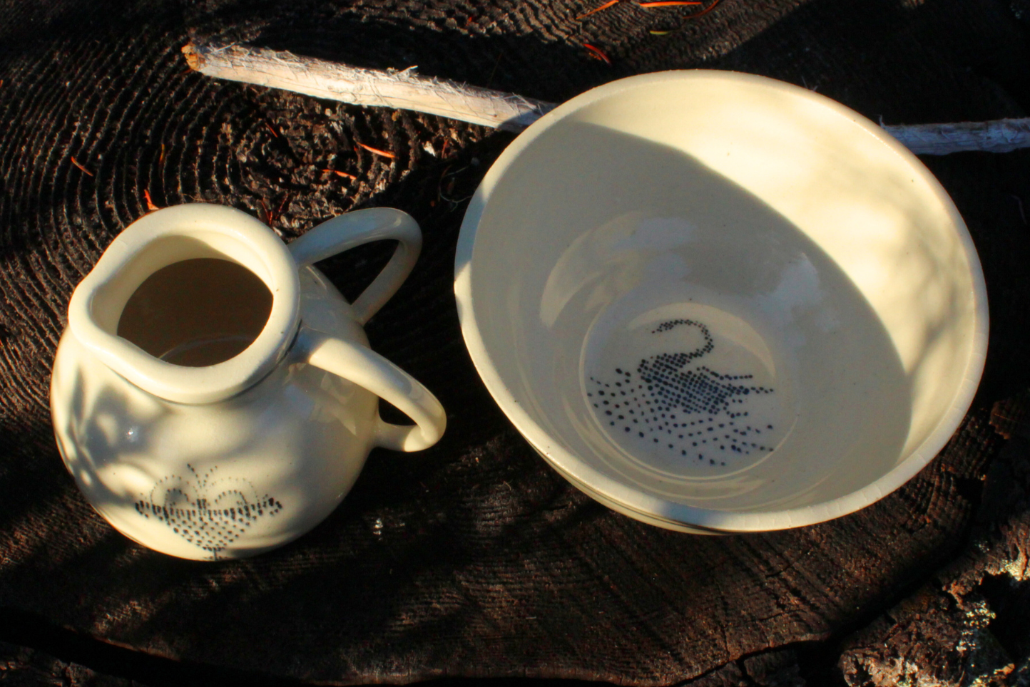 This ceramic handwashing pitcher and bowl set was handmade by kirsch.